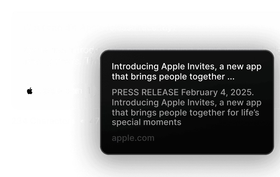 Quick AI combines the power of AI with the web to answer any question in a light and unobtrusive interface
